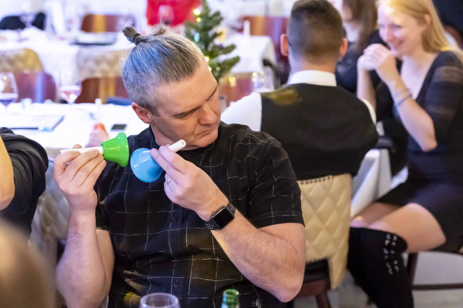 A program előtt minden vendég ülőhelyéhez elhelyezünk egy-egy csengőt, melyek különböző színűek. A 8 különböző színhez különböző hangok tartoznak. A kivetítőn megjelenő animáció tulajdonképpen egy-egy dal kottája, melyben a kottán csengők jelzik, hogy éppen mikor, melyik csengőt kell megrázniuk a vendégeknek. Itt mindenki figyel a kottára, illetve egymásra, a közös zenélés élménye pedig mindenkit magával ragad és elvarázsol. Ehhez a közös produkcióhoz nem szükséges semmilyen zenei előképzés vagy hangszerismeret, viszont egy olyan élménnyel gazdagodnak a résztvevők, melyre sokáig emlékezni fognak...